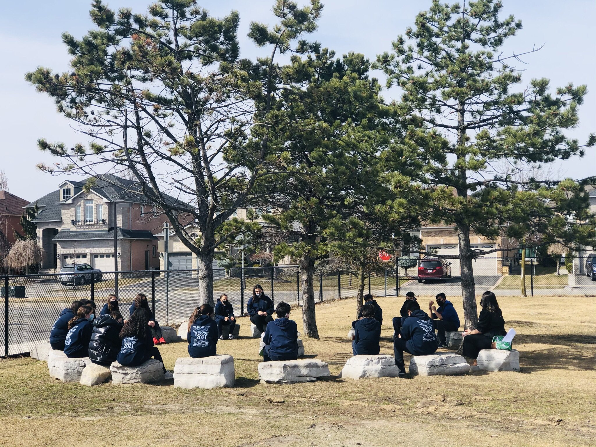 Home > students sitting in circle in an outdoor field